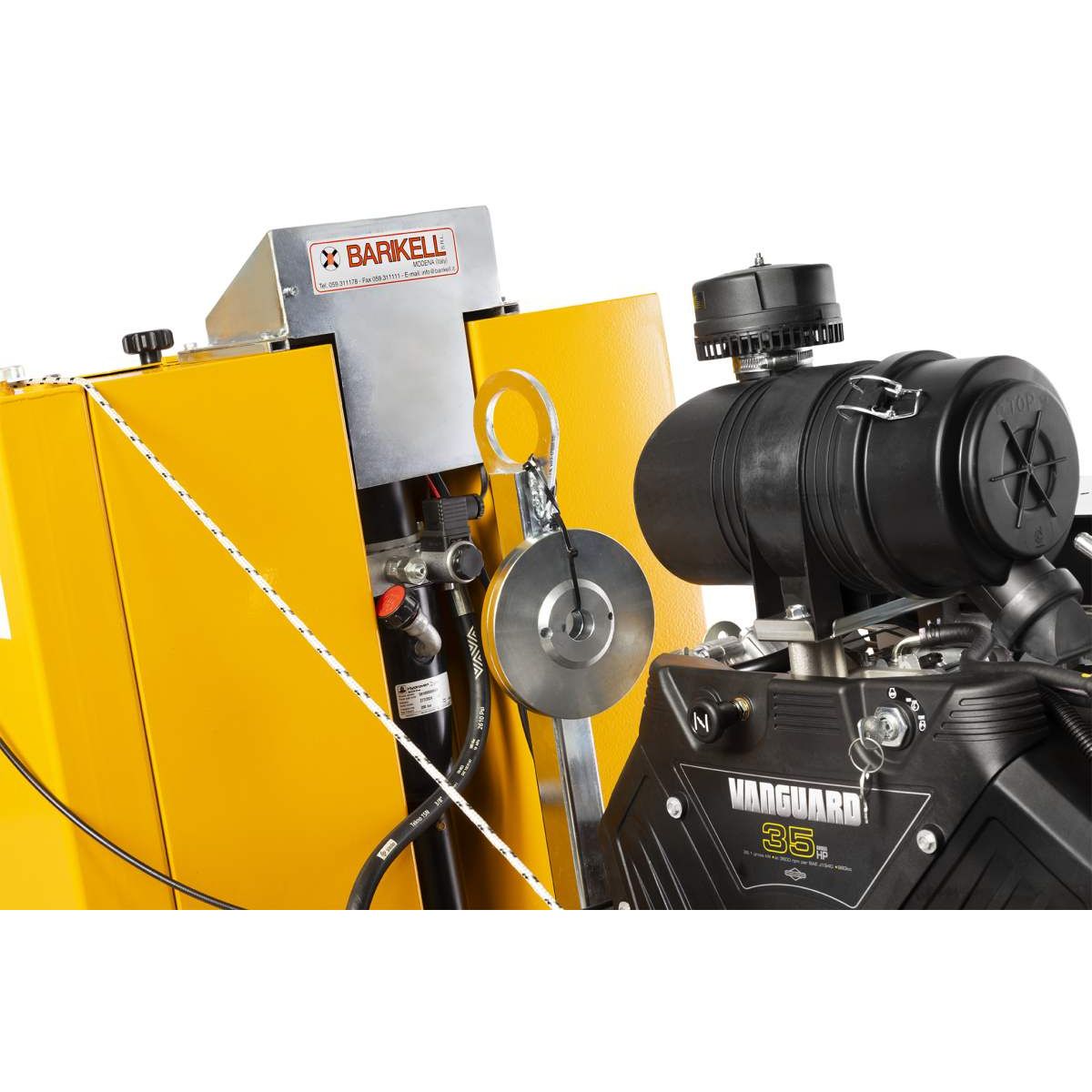 The machine is equipped with a 90-liter steel water tank. The blade guard supports cutting blades up to 600 mm, with an optional blade guard available for 800 mm blades. In addition, a second cutting blade can be installed on the opposite side of the machine.