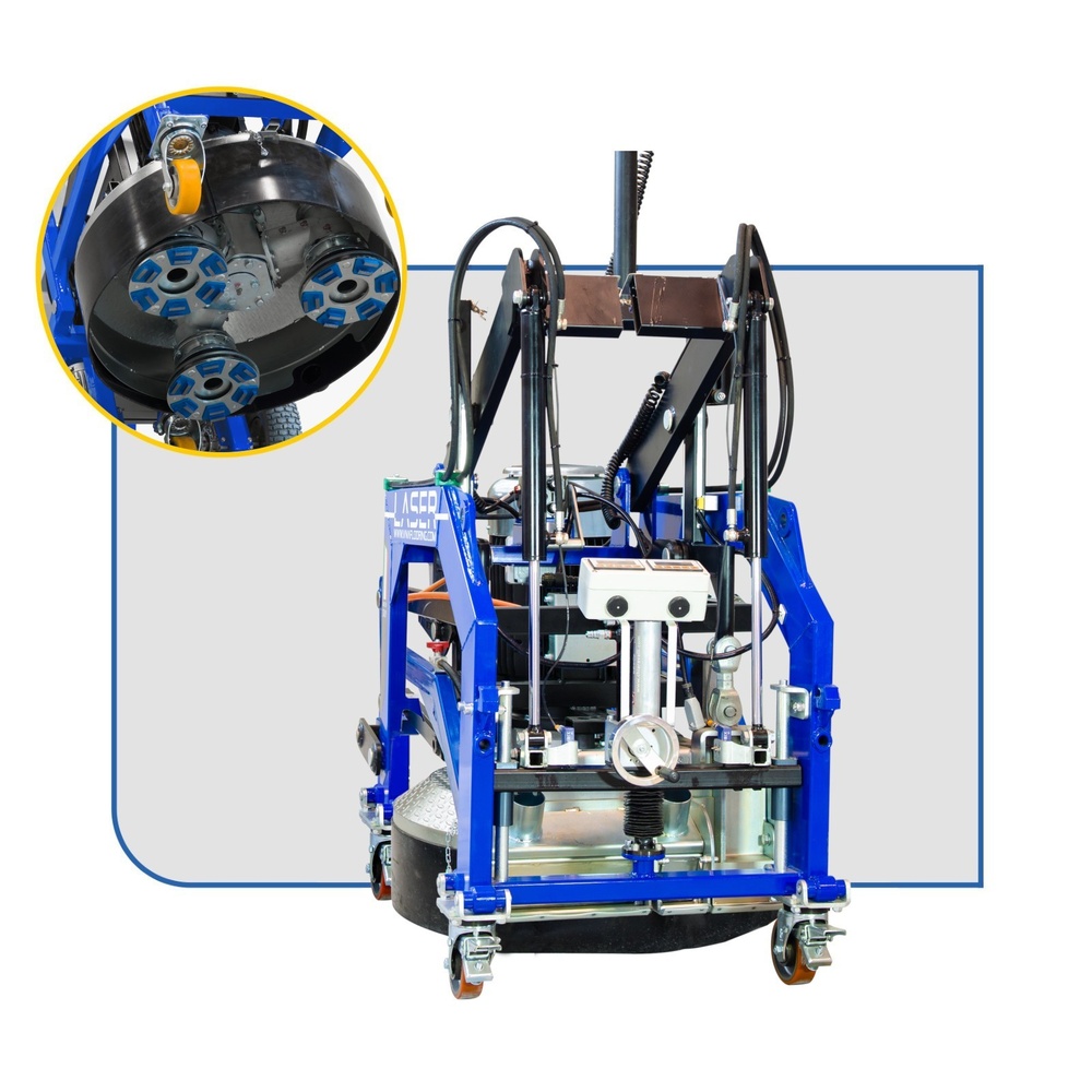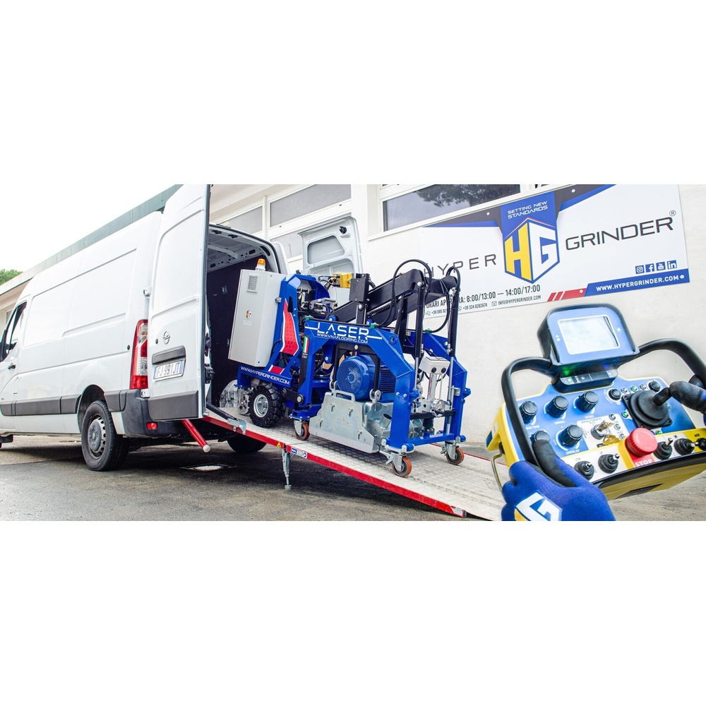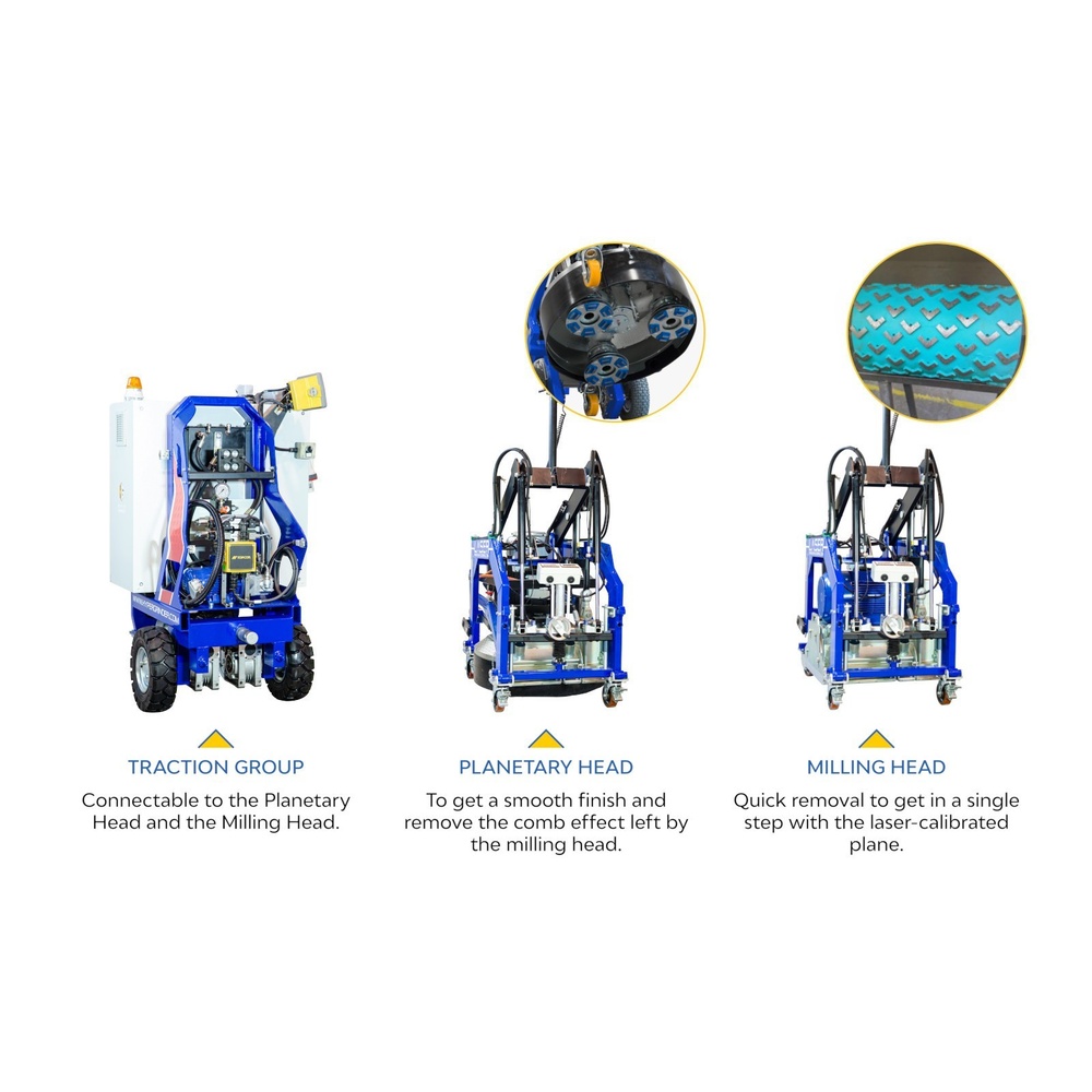 Remote-controlled for large-area operations, featuring adjustable working speed and pressure, a built-in battery, and an automatic drive system (Auto Drive).