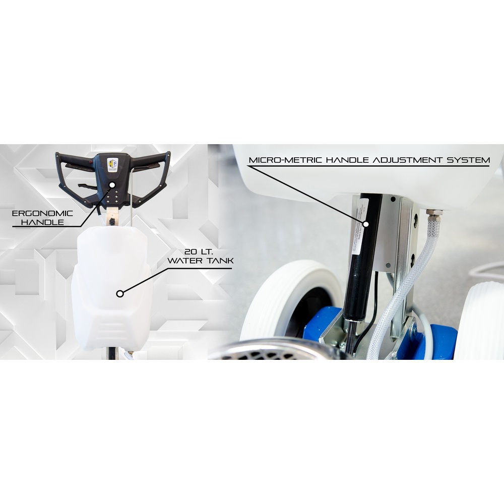 The shock-absorbing, direction-adjustable wheel set helps achieve a higher level of flatness and a superior finish.