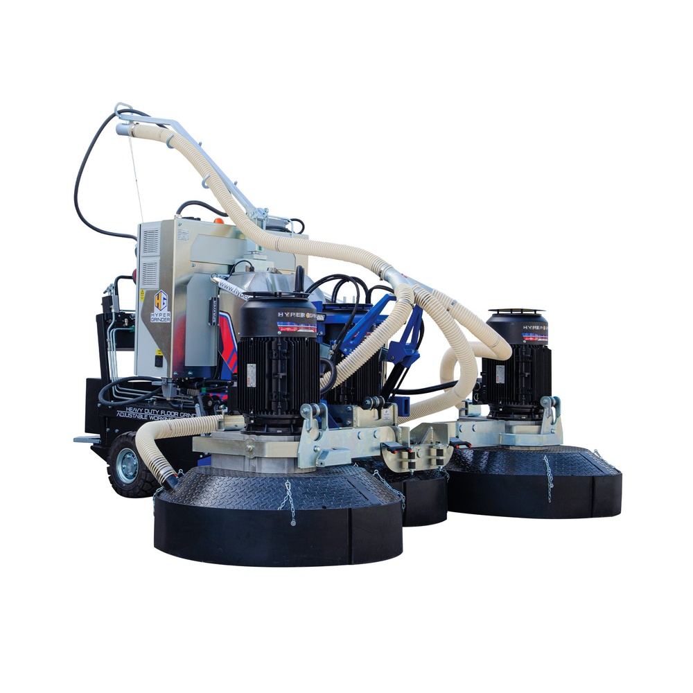 An advanced concrete floor grinding machine manufactured in Italy, the HGE 2500 is equipped with three grinding heads measuring Ø850 mm and nine tool holders measuring Ø240 mm, delivering a total working width of 2,500 mm.