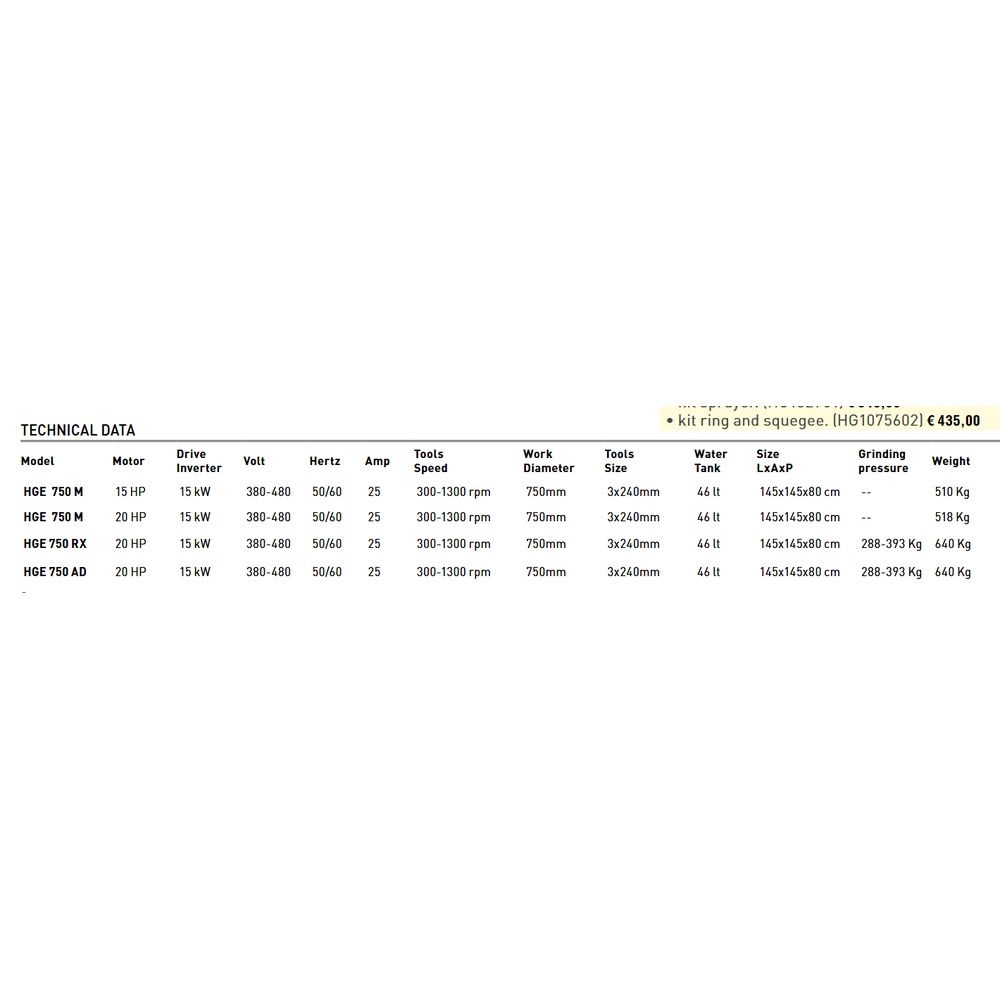 • Ring and water squeegee kit (HG1075602)