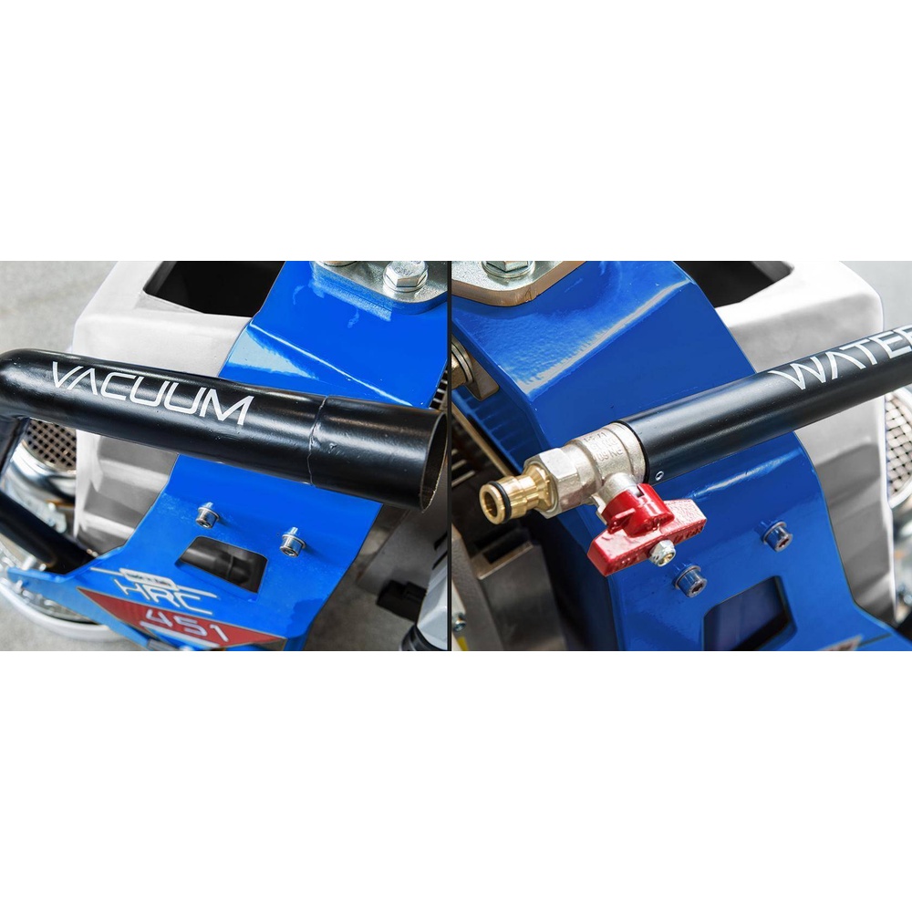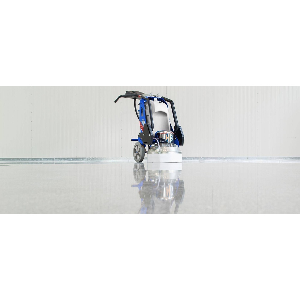 Shifting the weight forward increases downward pressure for grinding/polishing.