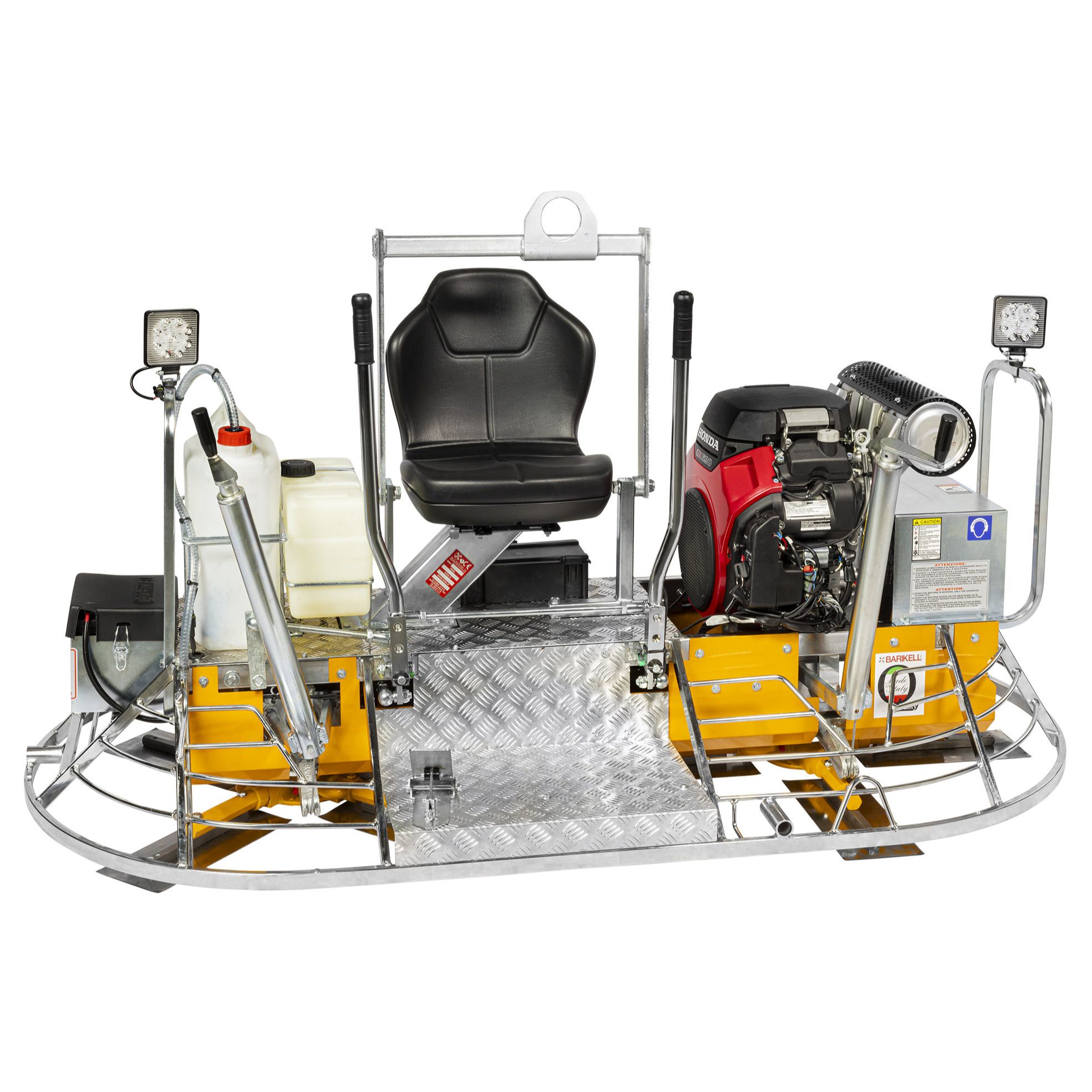 This ride-on power trowel is designed for floating and finishing medium to large concrete surfaces. It is equipped with two Ø90 cm rotors, each fitted with 8 non-overlapping blades, making it compatible with float discs.
