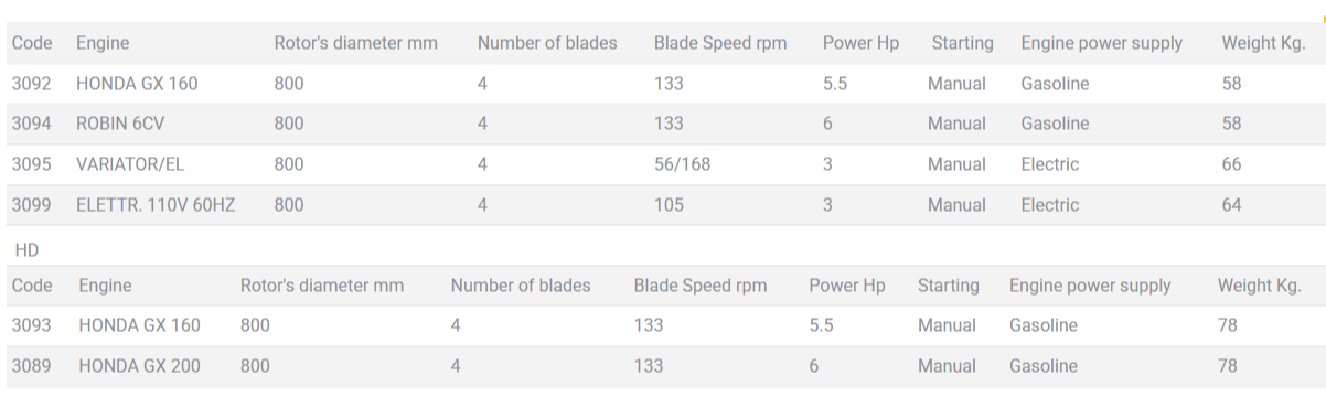 • รุ่น “HD”: มาพร้อมกับด้ามจับแบบแข็ง (rigid handle) และห้องเกียร์ที่มีประสิทธิภาพสูง เหมาะสำหรับงานหนัก (heavy-duty applications)