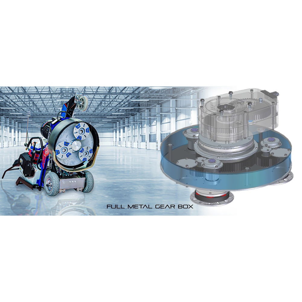เครื่องขัดและขัดเงาพื้นแบบจานหมุน (planetary) ควบคุมด้วยรีโมต เหมาะสำหรับพื้นที่ขนาดใหญ่ มาพร้อมระบบปรับความเร็วและแรงกดในการทำงาน, แบตเตอรี่ในตัว, และระบบขับเคลื่อนอัตโนมัติ (Auto drive) การใช้งาน