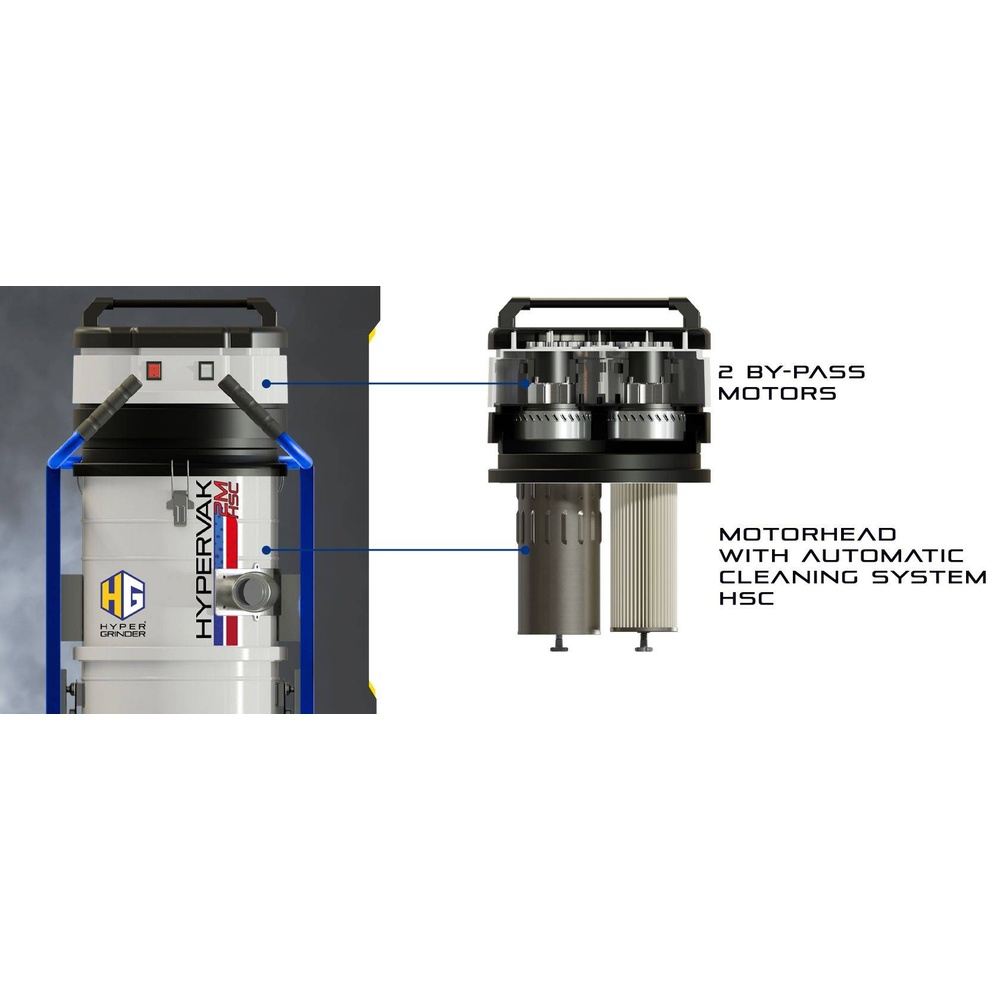 Hypervak 3M HSC BAG เป็นเครื่องดูดฝุ่นสามมอเตอร์ พร้อมด้วยระบบทำความสะอาดอัตโนมัติ, รถเข็นที่แข็งแรงทนทาน, และคุณสมบัติที่มอบความอเนกประสงค์และการใช้งานที่ง่ายดาย การใช้งานหลักของเครื่องยังคงเป็นการดูดฝุ่นละเอียด ซึ่งเครื่องรุ่นนี้โดดเด่นในด้านประสิทธิภาพและความน่าเชื่อถือ ทำให้ได้รับการยืนยันว่าเป็นหนึ่งในผลิตภัณฑ์ที่ดีที่สุดที่มีอยู่ในตลาด •มอเตอร์ By-pass แบบเฟสเดียว (Single-phase) จำนวน 3 ตัว