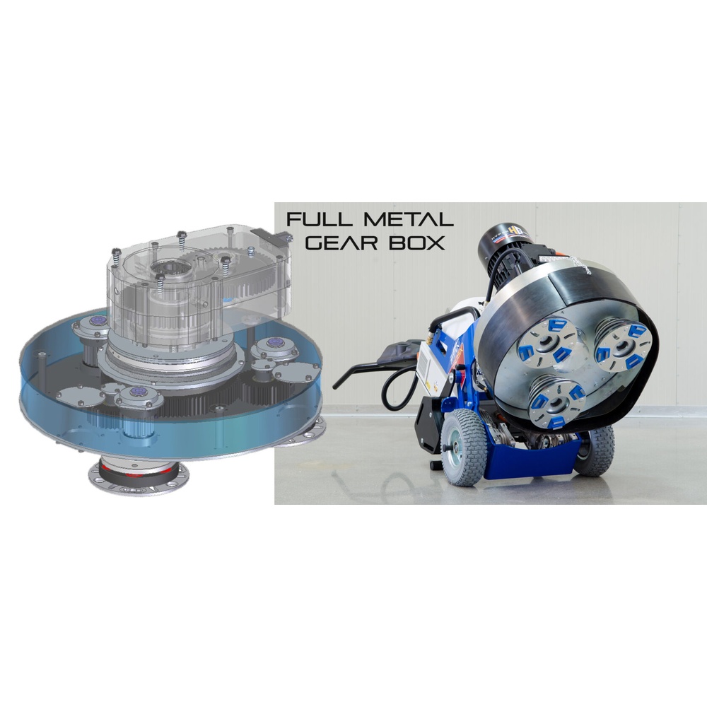 โครงสร้างแกร่ง ทนทาน: ชุดหัวขัดและห้องเกียร์ (Gear box) ทำจากสแตนเลส ชุบแข็ง (Tempered stainless steel) ป้องกันสนิมและรับแรงกระแทกได้ดี